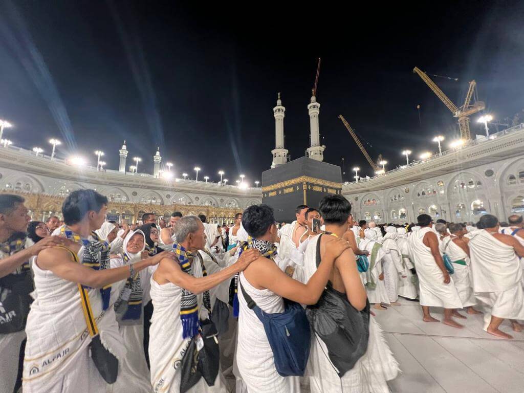 - Jika terpisah, segera menuju titik yang sudah disepakati (misalnya di depan pintu King Abdul Aziz atau area tertentu di Masjidil Haram).