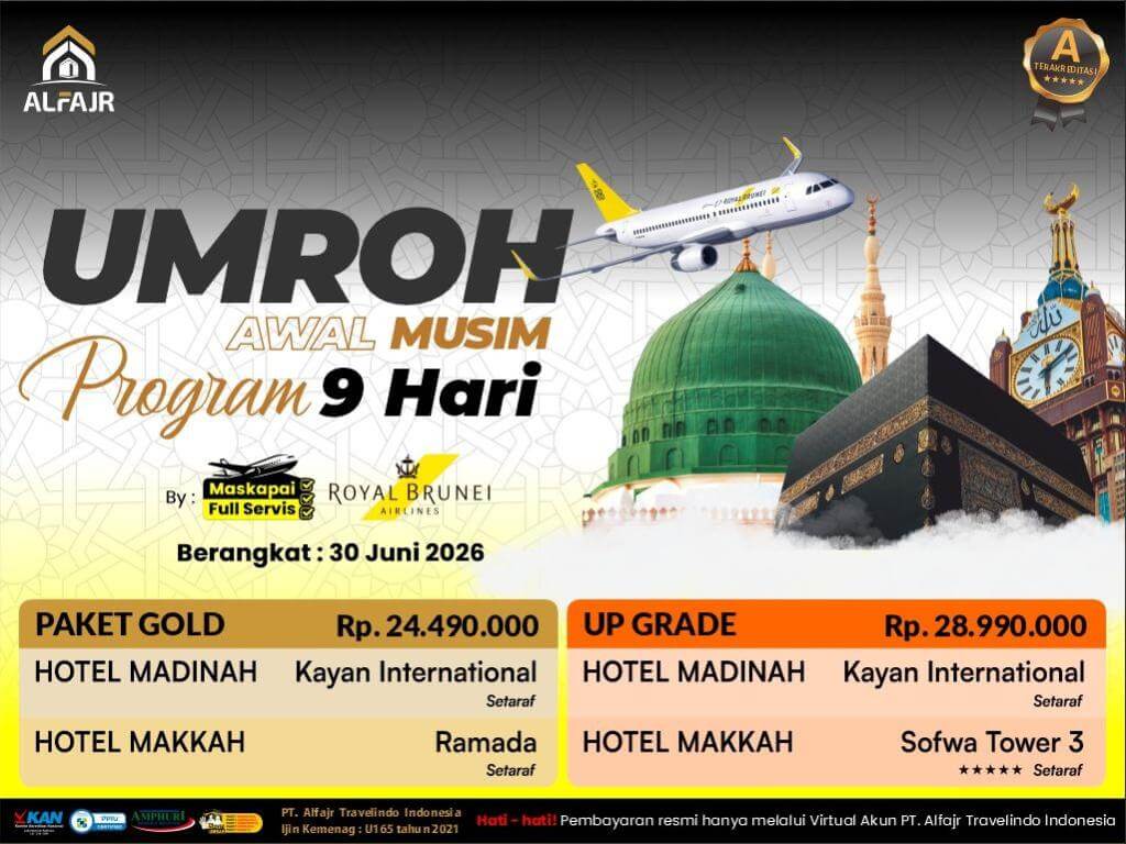 PAKET UMROH 30 JUNI 9H BY ROYAL BRUNEI