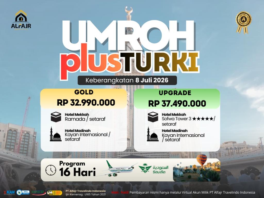 PAKET UMROH+TURKIYE 8 JULI 2026 SV 16 HARI