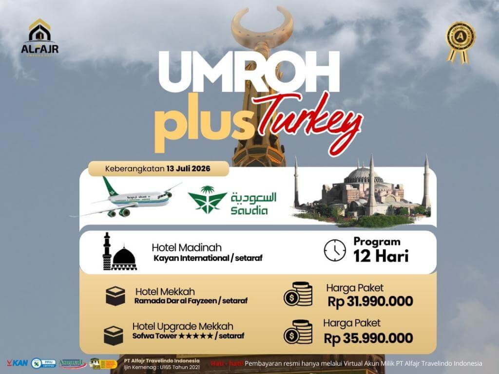PAKET UMROH 13 JULI 2026 UMROH + TURKI 12H