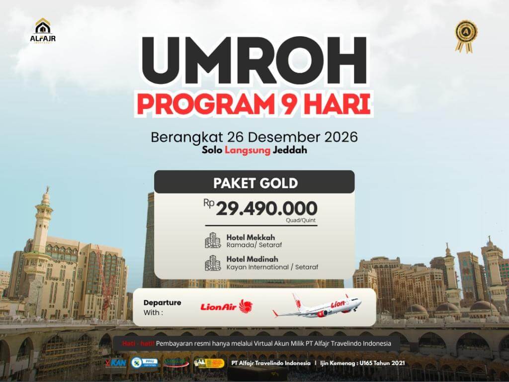 PAKET UMROH 26 DESEMBER 2026 LION 9 HARI